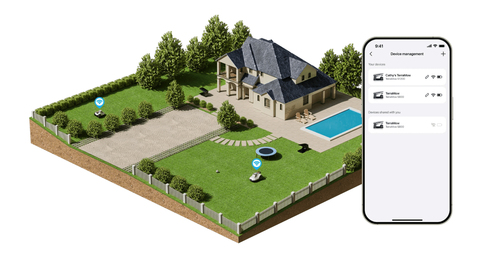 Vse robotske kosilnice povežite takoj prek Wi-Fi omrežja v naši namenski aplikaciji. Pametna nega trate še nikoli ni bila tako preprosta.